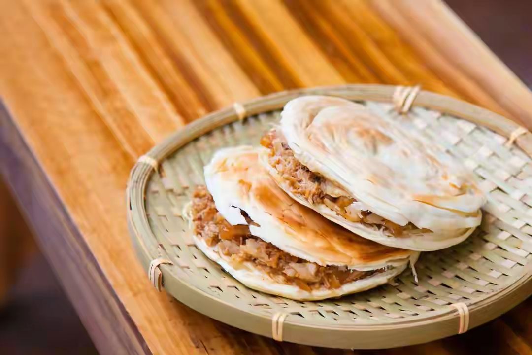 我拿著肉夾饃,竟有些無措的莊重。溫度透過粗糙的草紙,熨貼著手心。先湊近了,深深地嗅一下。麥子的焦香與肉的脂香,不分彼此地纏繞著,直往鼻腔里鉆,勾得腸胃都輕輕一顫。第一口,是極小心地咬下去的。齒尖先是遇到饃殼那點倔強的、帶著煙火氣的脆,接著便陷入一片無邊的、豐腴的柔軟里。臘汁肉的咸香、醇厚,混合著香料復雜而和諧的層次感,霎時間在舌面上決了堤。那肥肉是早已化了的,只留下一腔滑膩的香;瘦肉則絲絲入味,酥爛而不失其形。最妙的,是那一勺滾燙的肉汁,既是味道的統(tǒng)帥,又是口感的媒介,將饃的干香與肉的油潤,天衣無縫地調(diào)和在一起,讓每一次咀嚼都成了一場酣暢的、五味雜陳的慶典。