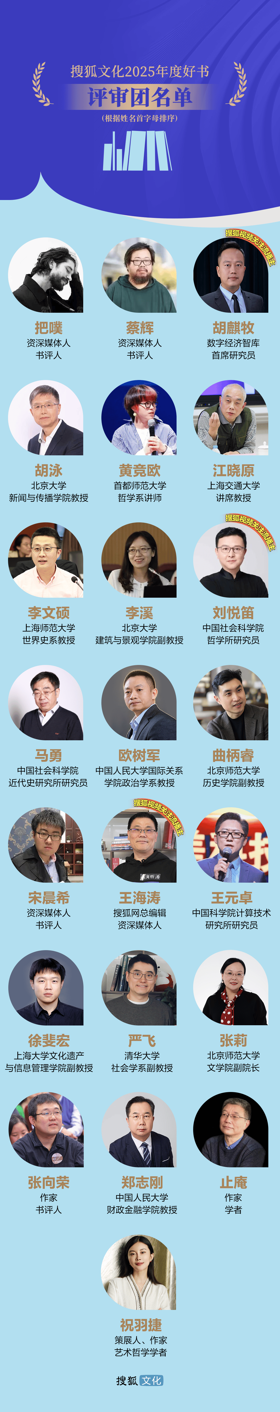 最終“搜狐文化2025年度好書”將由編輯部和22位好書顧問共同選出,并于2026年1月14日“搜狐文化年度閱讀沙龍”現場正式發布。期待與讀者朋友們在閱讀中“看”見時代之聲。
