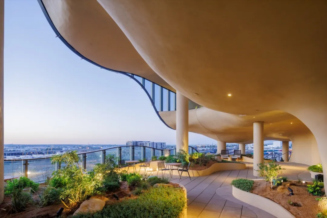 “裂縫” 中的公共空間和居住單元陽臺將布滿耐旱景觀綠植。