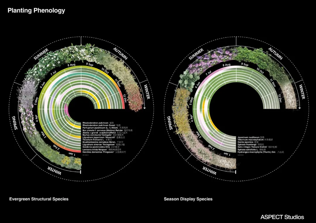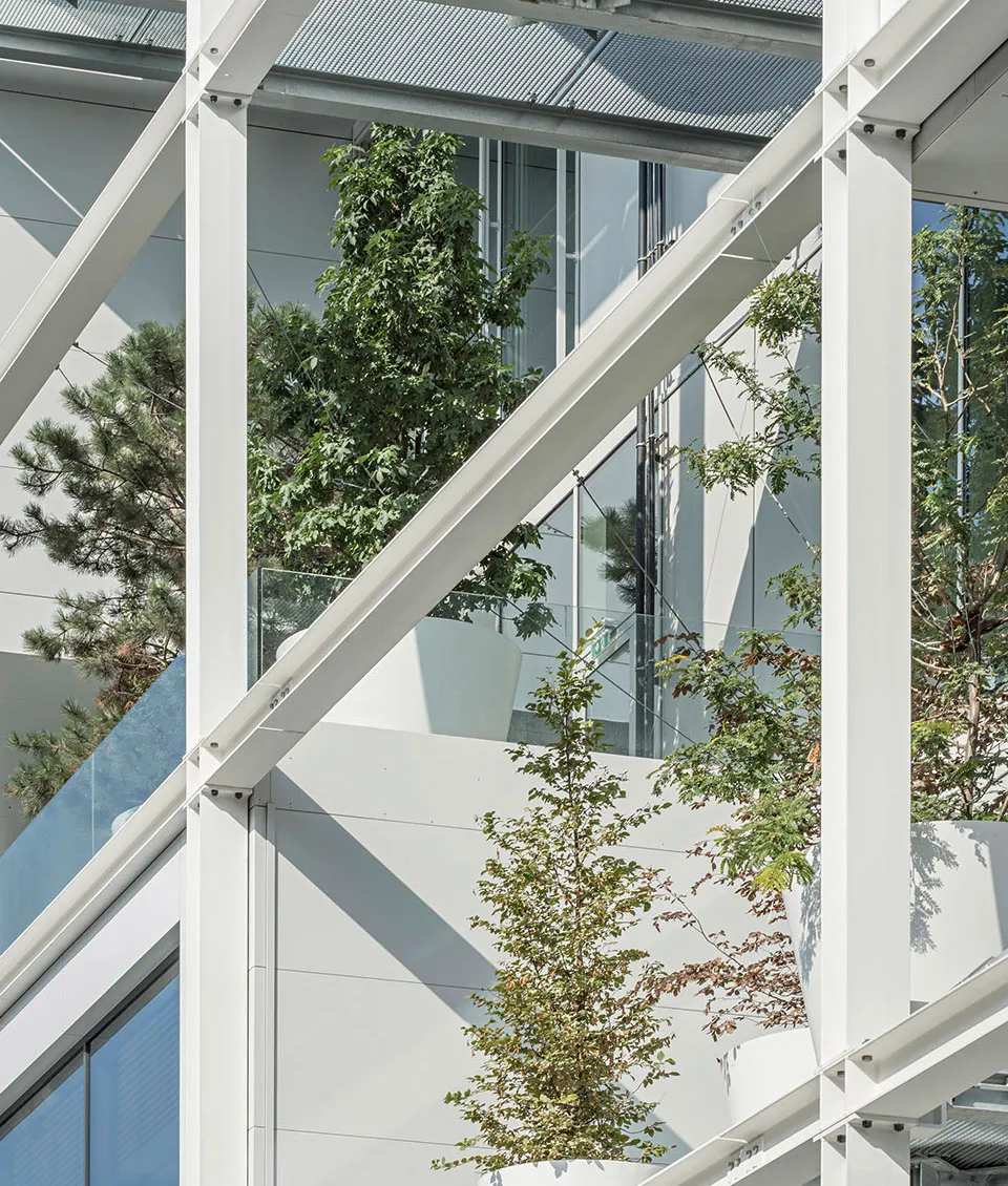 這些植物組團從中庭延伸到外部立面,展示了一個隨著四季更替不斷變化的生態畫面。