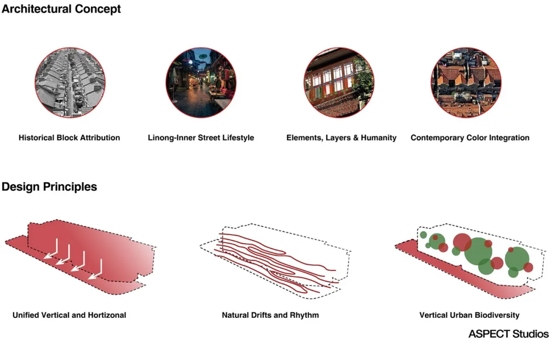 在項目設計過程中,傳統里弄的DNA滲透在項目設計和決策過程的每一個細節當中,將人與自然共生的愿景,多樣化社會生活方式在多個空間層次中表達。