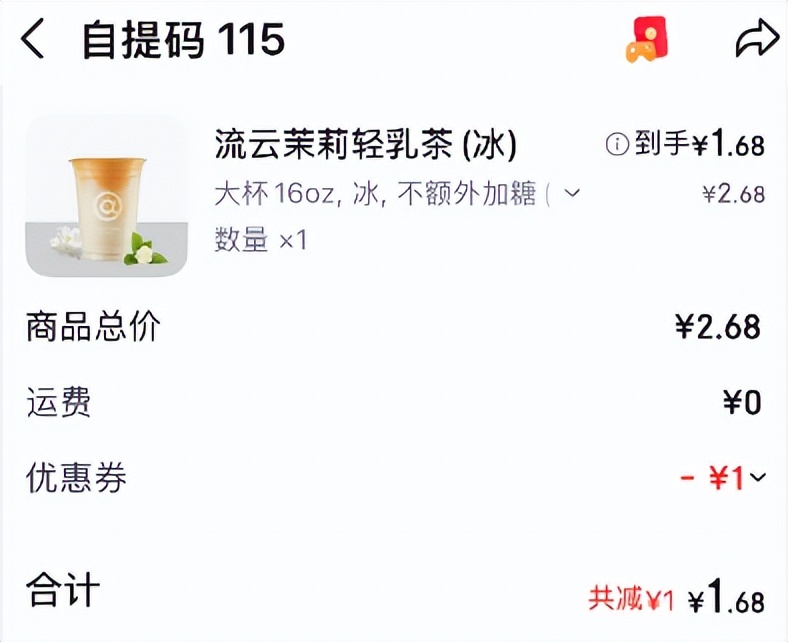 不過(guò)狐妹沒(méi)有搶到 1 分錢的,最后是花了 3 元,喝了杯 “ 無(wú)糖、中杯冰拿鐵 ” 。
