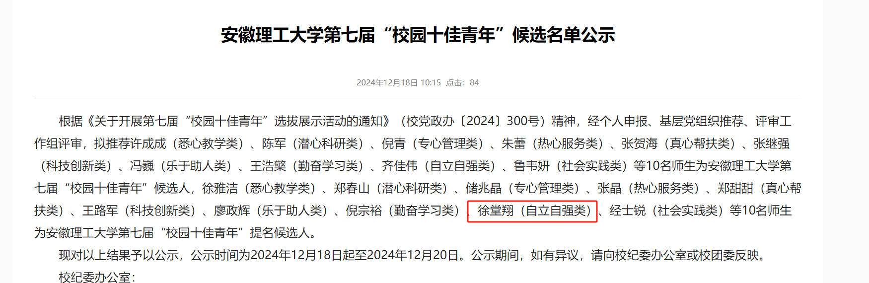 過往的磨礪是他積攢的風勢,堅定的信念是他翱翔的羽翼,徐堂翔正循著自己明晰的路徑,在學術與人生的廣闊天地里扶搖直上,不斷突破自我的上限,朝著更遠的天際奮力翱翔,書寫屬于自己的九萬里長空傳奇。路雖遠,行則將至;事雖難,做則必成!