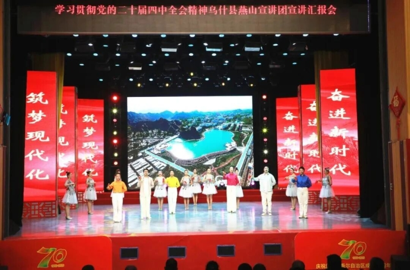 近日,烏什縣燕山宣講團在該縣影劇院宣講黨的二十屆四中全會精神,來自該縣各行業的干部群眾代表齊聚一堂,聆聽宣講,學習全會精神。