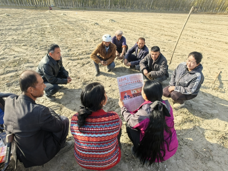 在拜城縣察爾齊鎮蘭干村,地區供銷合作社聯合社駐村工作隊隊員深入群眾,把黨的二十屆四中全會精神轉化為群眾聽得懂、用得上的“莊稼話”。駐村第一書記、工作隊隊長王江平說:“為推動全會精神在基層落地生根,我們將政策宣講從會議室搬到生產一線,在甜菜地邊、晾曬場旁,用‘沾泥土、帶露珠、冒熱氣’的語言讓黨的二十屆四中全會精神浸潤人心。”
