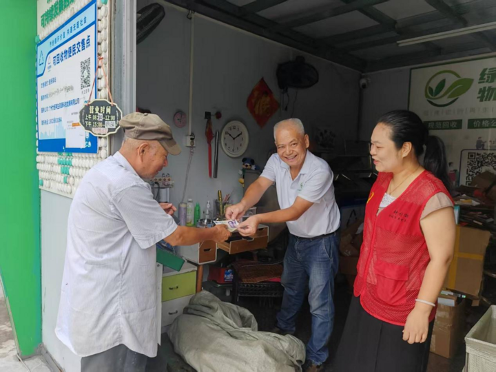 這是今年初社區上新的3個交售點之一。所屬企業由當地多部門聯合引入,形成了“企業駐場運營—物業提供場地—社區定期宣傳”的模式。企業負責人林先生說:“現在交售點日均回收量穩定,居民對規范、透明的回收方式非常認可。”