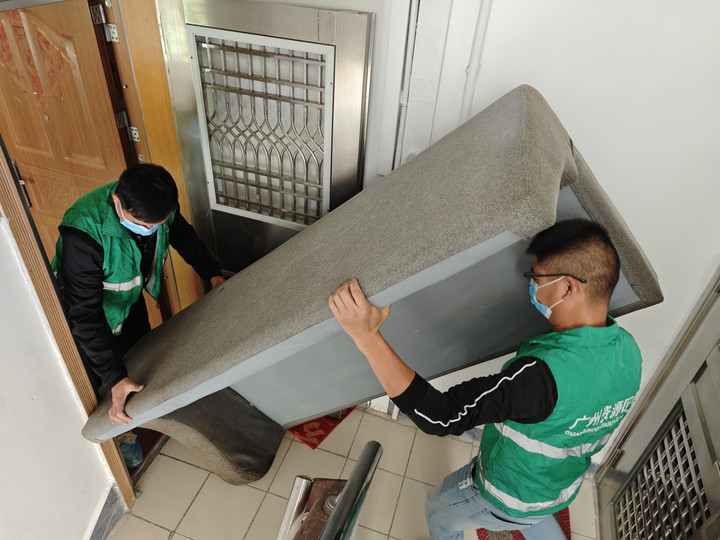 在廣州白云,目前已有120余個廢舊家具收集點,居民可以將廢舊家具自行搬運至收集點,也能通過線上平臺預約上門搬運。家具最后會被統一送到白云區大件家具處理中心。