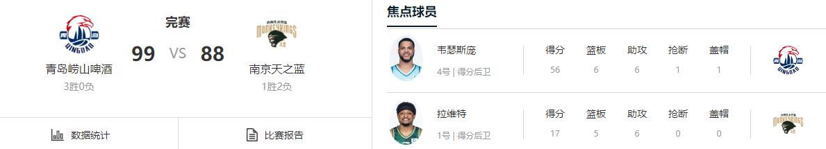 CBA常規賽第3輪,青島擊敗南京男籃,保持三戰全勝的戰績。從開局青島男籃早早調動狀態,迅速占據主導權,雖說中途稍有起伏,首發雙外援極為給力,尤其韋瑟斯龐簡直無解,各種得分表演勢不可擋,一次又一次站出來為隊伍穩定軍心,最終頂住反撲順利告捷。