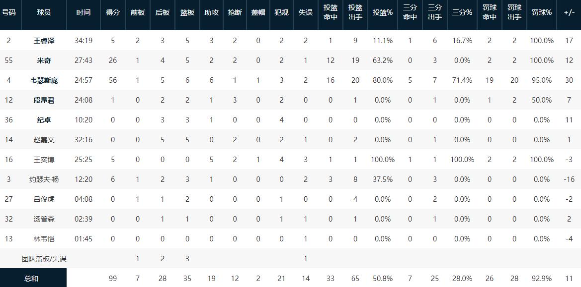 除此之外,這場還出現CBA罕見的一幕,青島隊總共拿到99分,其中三位外援狂攬88分,國內球員僅得11分,更離譜是他們只命中兩記運動戰(王睿澤9中1,王奕博1中1),如此數據可能放眼歷史都極其不可思議。