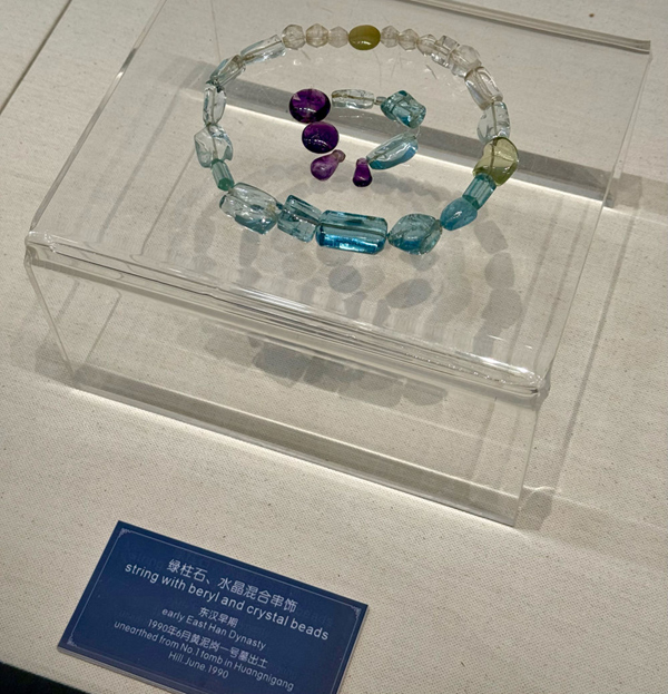 廣西北海的清晨,海風(fēng)帶著咸濕的氣息,拂過合浦漢代文化博物館。展柜里的一串串瑪瑙、水晶,足以讓人穿越千年。路過一個綠柱石、水晶混合串飾時,有人感嘆,“就是放在現(xiàn)在也不過時,太美了!”藍(lán)綠色的水晶串飾晶瑩剔透,仿佛能倒映出中外頻繁往來的景象。這是千年前一雙雙巧手用工具反復(fù)打磨的成果,既是海上絲綢之路貿(mào)易繁榮的見證,也蘊(yùn)藏著古人對美的極致追求。