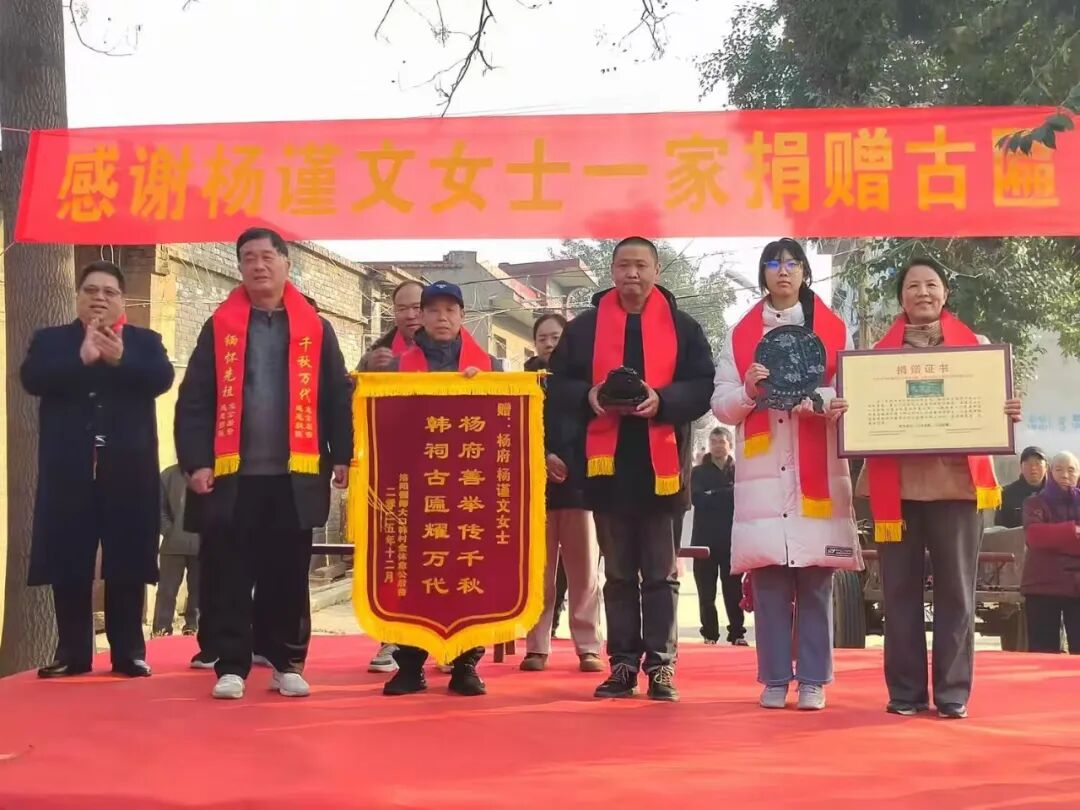 一塊匾額,牽動兩地情緣;一場捐贈,續寫文化傳承。12月18日,在大口鎮韓村韓文公祠堂前,來自河北省石家莊市的楊謹文女士一家將珍藏多年的“斯文砥柱”古匾無償捐贈給韓村,讓這件流失在外20余年的文物瑰寶,終于回到了它的誕生之地。