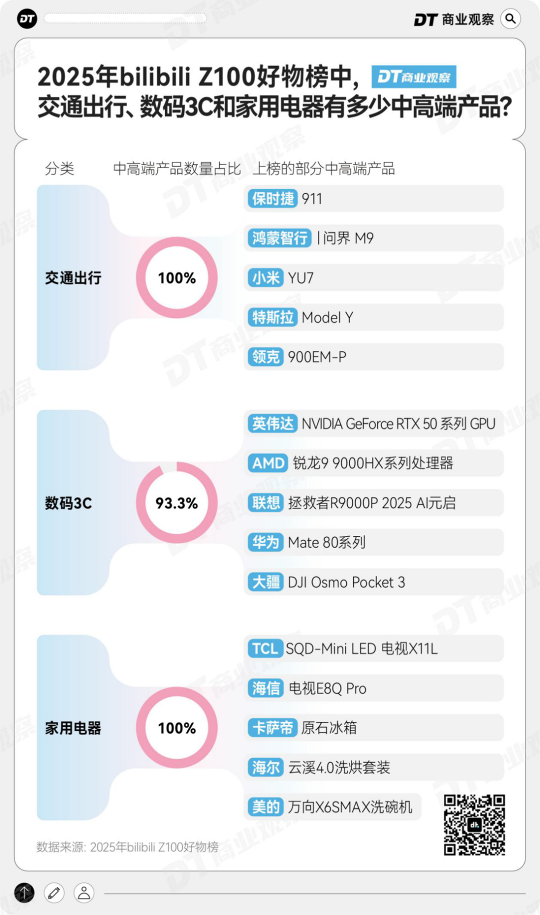 從B站Z100榜單本身就能看出,榜單中不乏高客單價產品,不同的是,人們更傾向于集中預算、減少試錯,用“是否能解決明確痛點”“是否能持續使用”“是否具備長期收益”來評估一次購買。