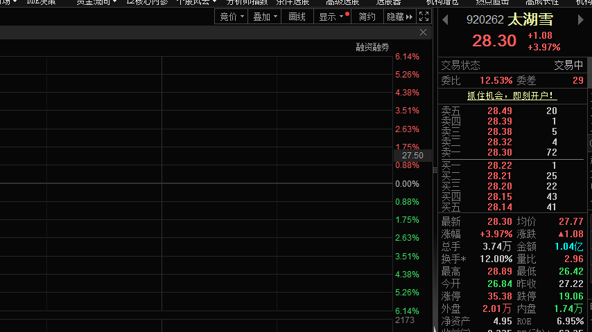 12月19日,太湖雪(920262)股價上漲。截至發稿,股價漲近4%,近一周股價漲幅超18%。