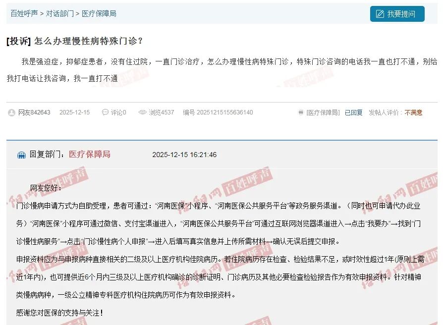 有網友在洛陽網百姓呼聲發帖咨詢,