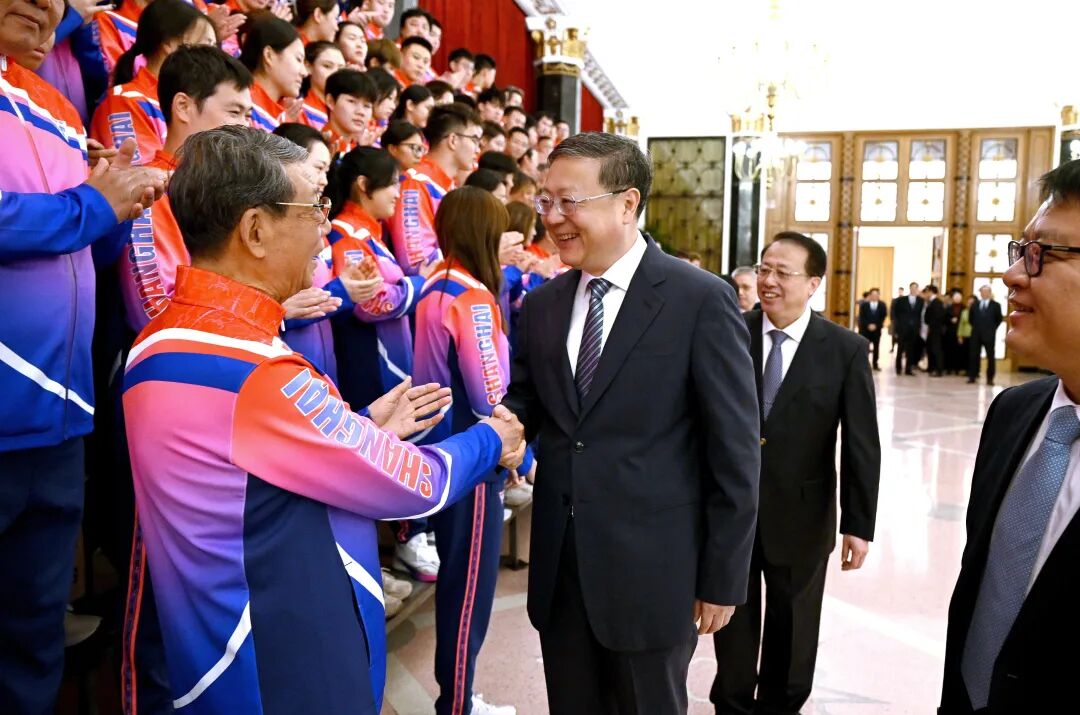 陳吉寧指出,當前,我們正在深入學習貫徹黨的二十屆四中全會和習近平總書記考察上海重要講話精神,高質量編制“十五五”發展規劃,朝著加快建成具有世界影響力的社會主義現代化國際大都市的目標奮進。體育是提高人民健康水平的重要手段,也是實現中國夢的重要內容,能為中華民族偉大復興提供凝心聚氣的強大精神力量。我們要在全社會講好上海體育健兒的精彩故事,弘揚拼搏精神,更好凝心聚力,激勵全市各行各業爭當敢闖敢試敢爭先的“小老虎”,干字當頭、奮力一跳,努力在推進中國式現代化中充分發揮龍頭帶動和示范引領作用。希望全市體育戰線的同志們接續奮斗,再攀高峰、再創佳績,在推動全民健身和全民健康深度融合上更好發揮引領帶動作用,為上海全球著名體育城市建設作出更大貢獻。