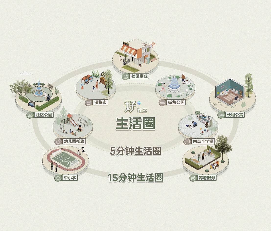 “好+社區”是龍湖好房子在強配套層面的體現,以開發優化空間結構,以運營激發社區活力,以服務響應多元需求,為購房人的需求提供系統性解決方案。以15分鐘生活圈為例,龍湖認為這是美好生活需要的重要保障,其通過參與社區商業、社區公園、中小學、長租公寓、養老服務的建設,與政府共同構建民生保障與美好生活基本盤。