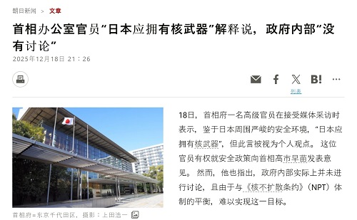 這是朝日新聞的報(bào)道,12月18日,日本首相辦公室一名高級(jí)官員接受媒體采訪時(shí)表示,日本有必要討論自身的核武器計(jì)劃。