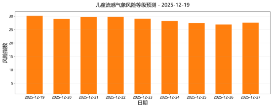 圖1 2025年12月19日至12月27日天津市兒童流感氣象風險指數預測趨勢