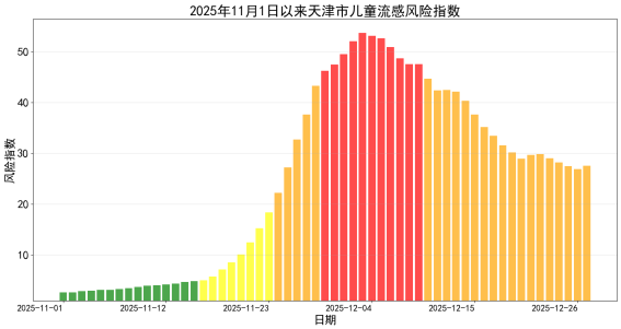 圖2 2025年11月以來天津市兒童流感氣象風險指數變化趨勢