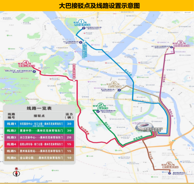 (五)線路5:三棟鎮惠州南高鐵站(文思一路)往返奧林匹克體育場東門。