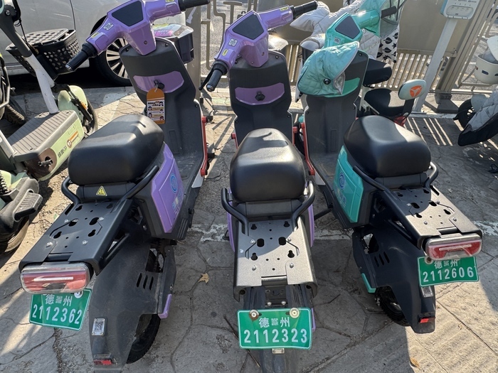 租賃電動(dòng)車現(xiàn)濟(jì)南街頭,車尾懸掛外地號(hào)牌