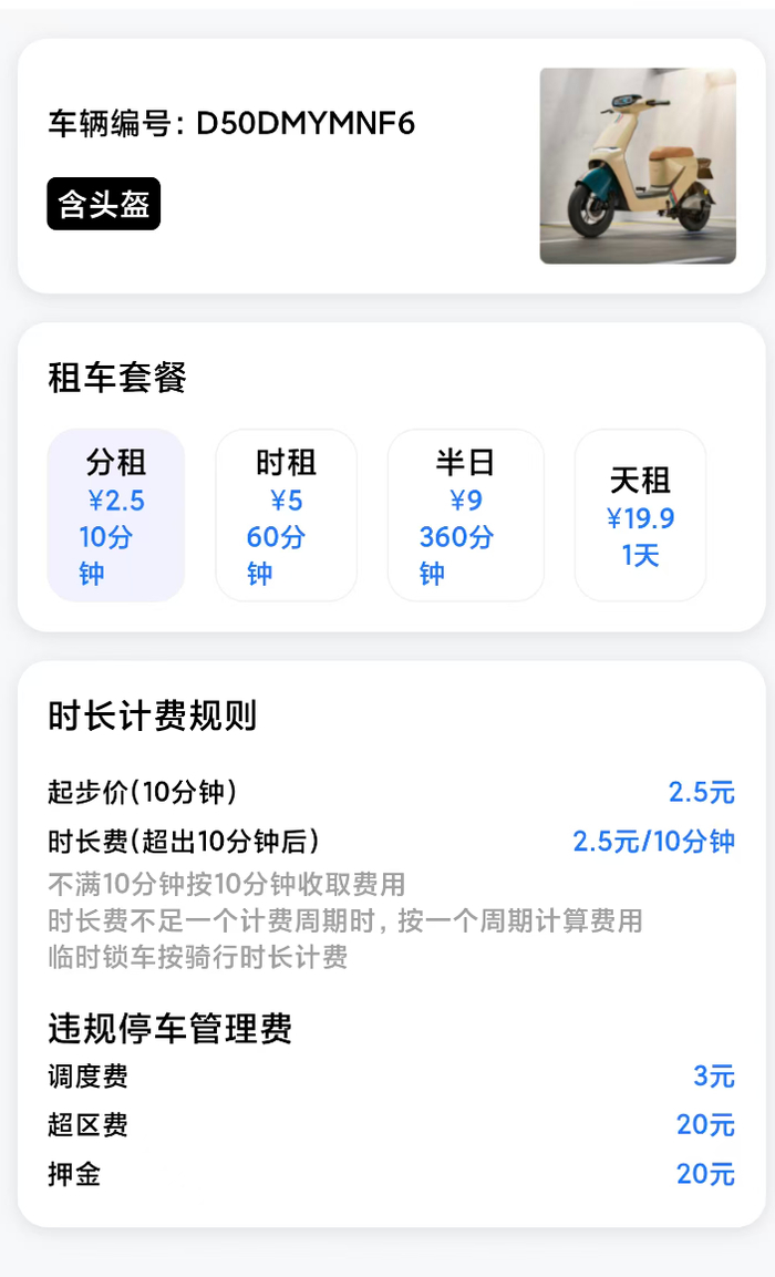 記者掃碼進(jìn)入“云錦鋰換電”小程序界面可以看到,該租賃電動(dòng)自行車有“分租”“時(shí)租”“半日租”“日租”四種收費(fèi)方式,“分租”的價(jià)格為2.5元/10分鐘,“時(shí)租”的價(jià)格為5元/1小時(shí),“半日租”的價(jià)格為9元/6小時(shí),“日租”的價(jià)格為19.9元/天,在選擇完收費(fèi)方式后,會(huì)收取押金20元,在還車后,押金會(huì)原路退回。