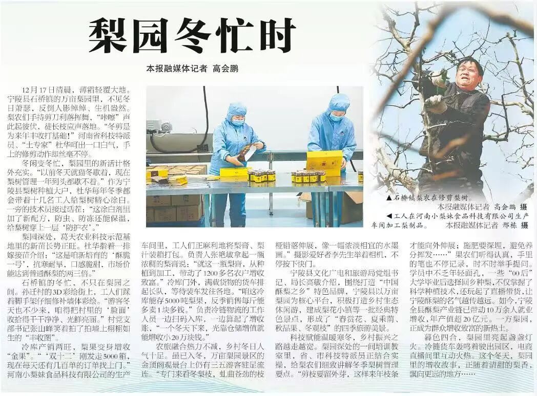 冬閑變冬忙,梨園里的新活計格外充實。“以前冬天就貓冬歇著,現(xiàn)在梨樹管理一年到頭都歇不著。”作為寧陵縣梨樹種植大戶,杜華每年冬季都會帶著十幾名工人給梨樹精心涂白。一旁的技術(shù)員接過話茬:“這涂白劑里加了新配方,防蟲、防凍還能保溫,給梨樹穿上一層‘防護衣’。”