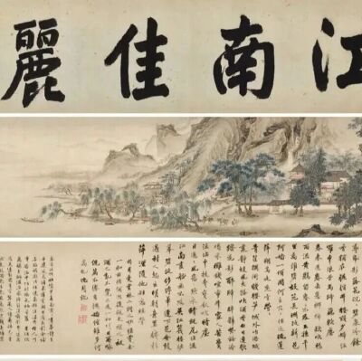 龐萊臣后人捐給南京博物院的明代仇英《江南春》圖卷(局部),2025年出現在北京一拍賣公司預展中。