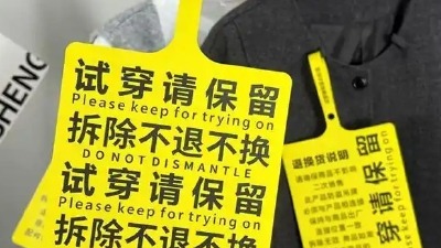 “新買的漢服旋裙,吊牌大小快趕上A4紙的尺寸了……”今年的“雙12”前后,社交平臺上多位網友曬出服裝吊牌,尺寸為A4紙左右大小,并感嘆,“衣服越做越小,吊牌越做越大”“吊牌比衣服還夸張”。
