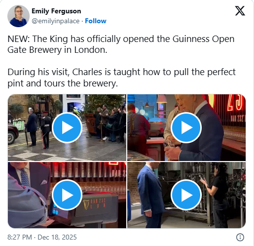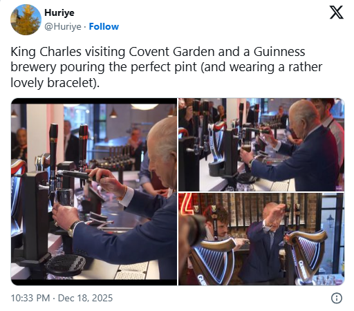 這一幕發(fā)生在倫敦科文特花園,一座耗資7300萬英鎊改造的全新吉尼斯體驗中心。國王的這次“微服私訪”,不僅讓王室觀察家們大跌眼鏡,更意外引爆了全球娛樂話題。