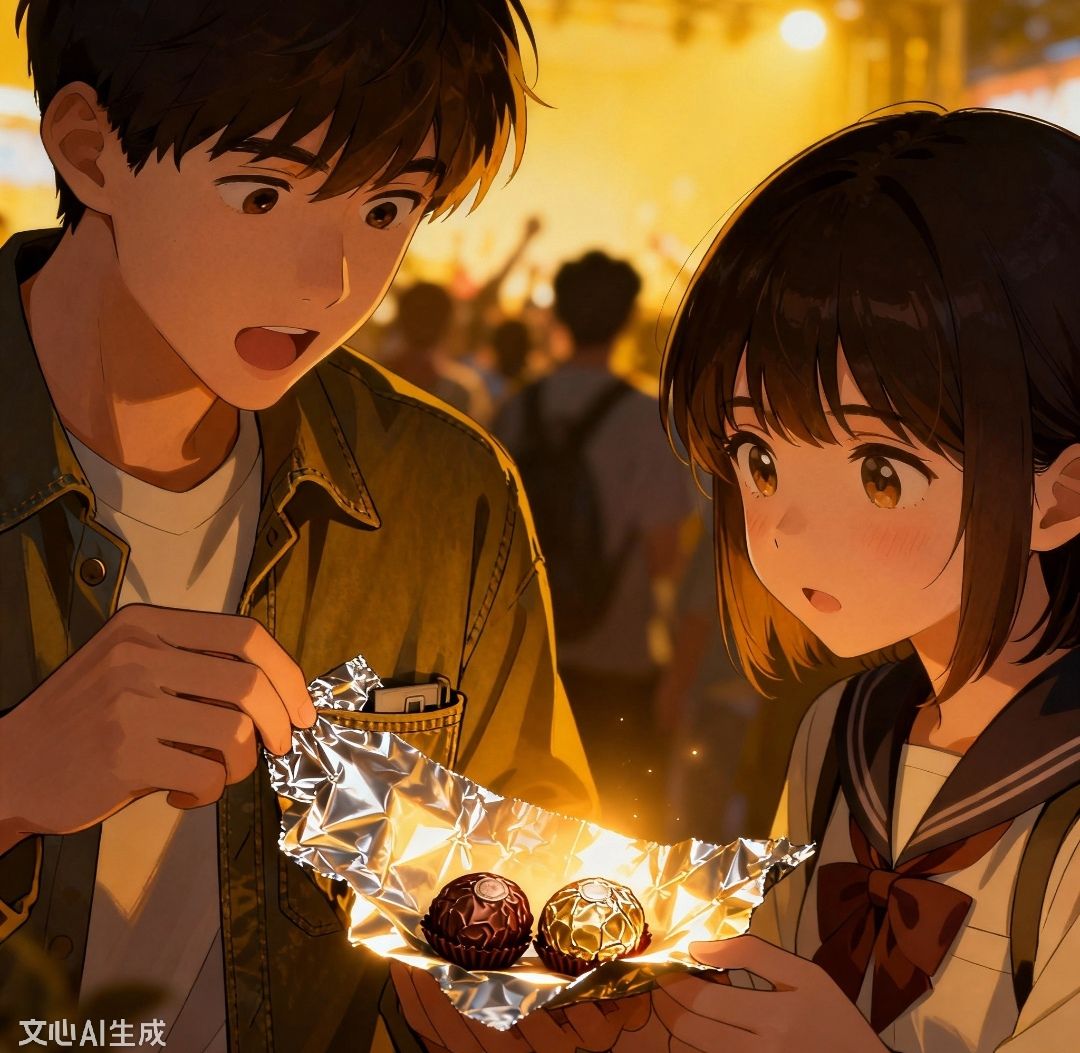 鐵心拆開一看,里面是兩顆裹著錫箔的巧克力,在燈光下閃爍著溫暖的光芒。喧囂聲中,他們的心跳聲,穿過金屬箔的縫隙,清晰而有力,比任何電磁波都更能穿透彼此的心靈。