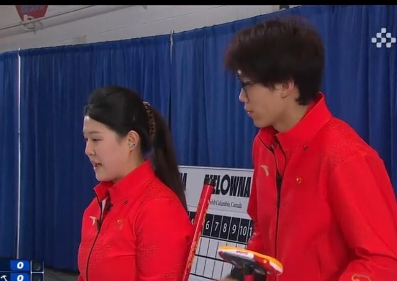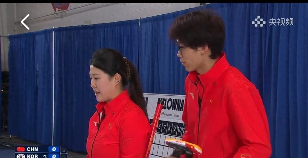 比賽在北京時(shí)間12月19日凌晨2點(diǎn)打響,對(duì)手是同樣6勝1負(fù)的韓國(guó)隊(duì)。 他們的女選手金世英,可是拿過(guò)冬奧會(huì)銀牌的老將。 而我們這邊,是今年夏天才剛剛搭檔的葉紫萱和于森,一個(gè)20歲,一個(gè)21歲。 開局其實(shí)挺膠著,前兩局打完,2比2平手。
