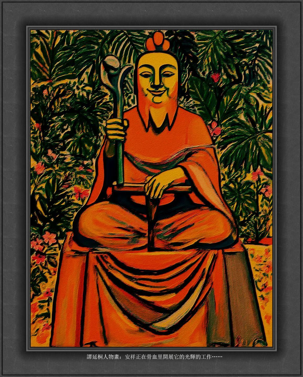 證悟,是第一位的,是內(nèi)在生活的核心。看一個人,是一定要看他或她究竟證悟了多少、證悟得怎樣的。懶得證悟的人,很容易淪為拾人牙慧、撿人涕唾的一族。而證悟的方式,自然是有很多,正所謂,“直心是道場”、“一行三昧”、 “佛法在世間,不離世間覺”、“行住坐臥,應(yīng)機接物,盡是道”、 “行住坐臥皆是道場,劈柴擔(dān)水無非妙道”……也就是說,無論是在哪里,也無論是做什么,都是有證悟的影子幽靈一樣在游蕩的。而要描述它,唯一的方式,便是以自己的骨頭為筆。