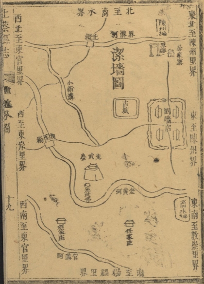 ? ? ? ? 入清以后,多部方志和類書對固墻的古稱形成了一致記載。清雍正《古今圖書集成》、上蔡舊志、陳州舊志均提及固墻古稱古墻、固墻店、潔己鄉。道光《淮寧縣志》還稱固墻為義鄉。萬歷《汝南志》、康熙元年《汝寧府志》中,尚未有固墻設里的記載。康熙二十九年《上蔡縣志》中,此地已設潔墻里,劃分為上、下兩甲,分別為潔己、固墻;而淮寧縣則將其歸入南鄉管轄。