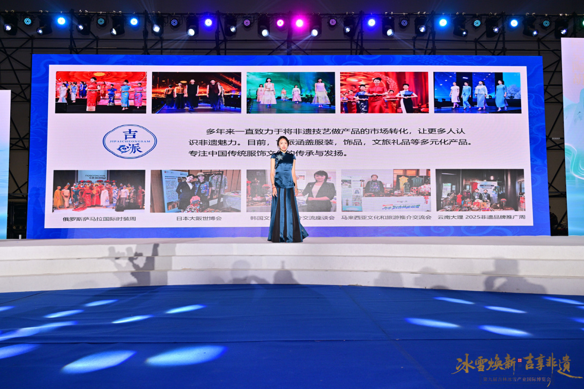 在創新融合展示環節,活動集中推介了“冰湖騰魚”等一批具有市場潛力的吉林非遺品牌,同時融合了滿族傳統刺繡工藝、滿族十八鑲滾傳統制作工藝、滿族荷包(旗袍配飾)三項非遺技藝的“吉派”品牌也在現場發布了與畫家丁宇、書法家王心明的合作創作的新品雪服。