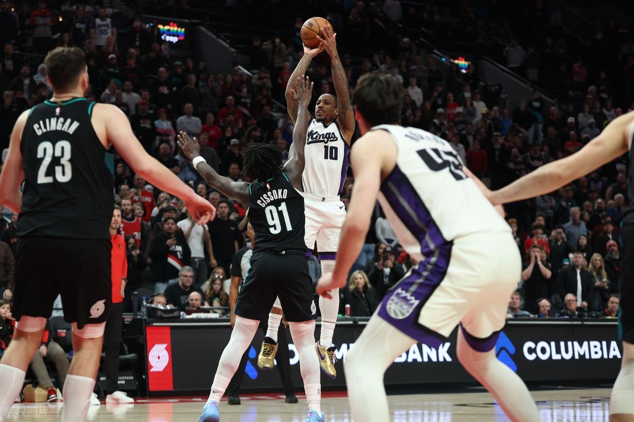 真正的戲劇性轉折發生在末節。國王進攻突然斷電,長達7分鐘僅得6分。開拓者趁勢轟出25-6的瘋狂攻擊波,一舉建立起18分的巨大優勢。然而,就在勝利似乎唾手可得時,開拓者突然松懈,在最后2分28秒內揮霍了15分領先優勢。國王絕地反擊,憑借德羅贊的關鍵三分,硬生生將比賽拖入加時。