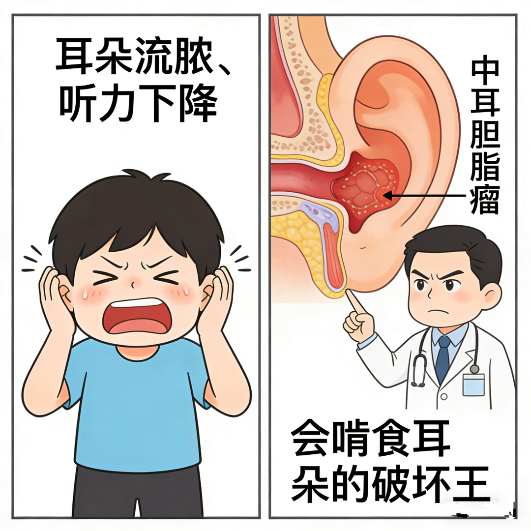 尤其要注意:兒童也會得中耳膽脂瘤!如果孩子經常捂耳朵說疼、看電視音量開很大、耳朵流膿,別只當“上火”,一定要及時去耳鼻喉科檢查。