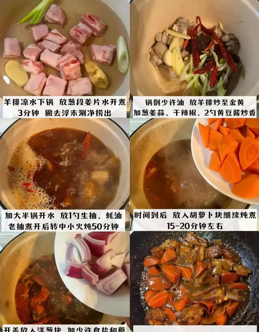 1. 焯水去腥(關鍵):羊肉(選帶皮羊腩或腿肉)切塊,一定要冷水下鍋,加幾片姜、一勺料酒。大火煮開,仔細撇掉浮沫,撈出用溫水沖洗干凈。用冷水,血沫才出得干凈。