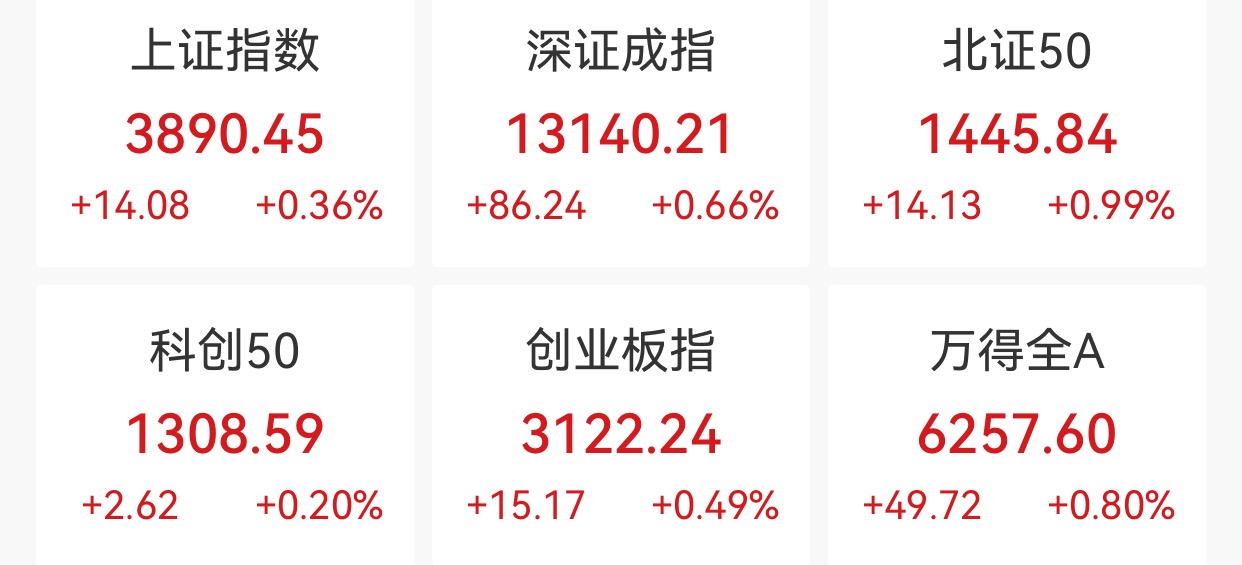 中新經(jīng)緯12月19日電 19日,A股三大指數(shù)集體上漲。截至收盤,上證指數(shù)漲0.36%,報3890.45點;深證成指漲0.66%,報13140.21點;創(chuàng)業(yè)板指漲0.49%,報3122.24點。
