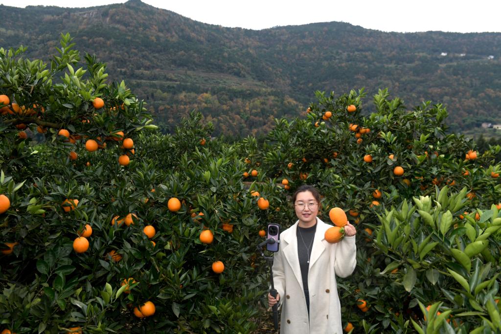 張桂華從小在筍子溝村長大,畢業后她主動返鄉工作,2020年被選為筍子溝村黨支部書記兼村委會主任,在全縣“一村一主播”項目支持下,她帶領村民,通過網絡直播,帶貨本村特產金鳳柑橘。