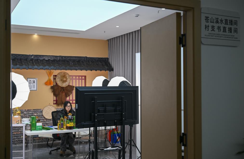 這是12月12日在四川省廣元市蒼溪縣杭廣東西部協作數字產業園拍攝的“村支書直播間”。新華社記者 孫凡越 攝