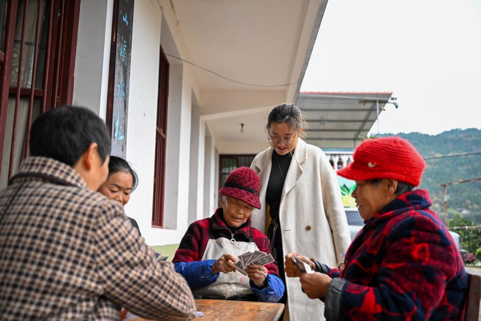 12月12日,在四川省廣元市蒼溪縣陵江鎮筍子溝村,村支書張桂華與村民交流。新華社記者 孫凡越 攝