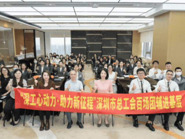 應(yīng)懸掛橫幅或電子顯示屏,內(nèi)容為:“深工心動力·助力新征程”深圳市總工會百場團(tuán)輔進(jìn)基層。