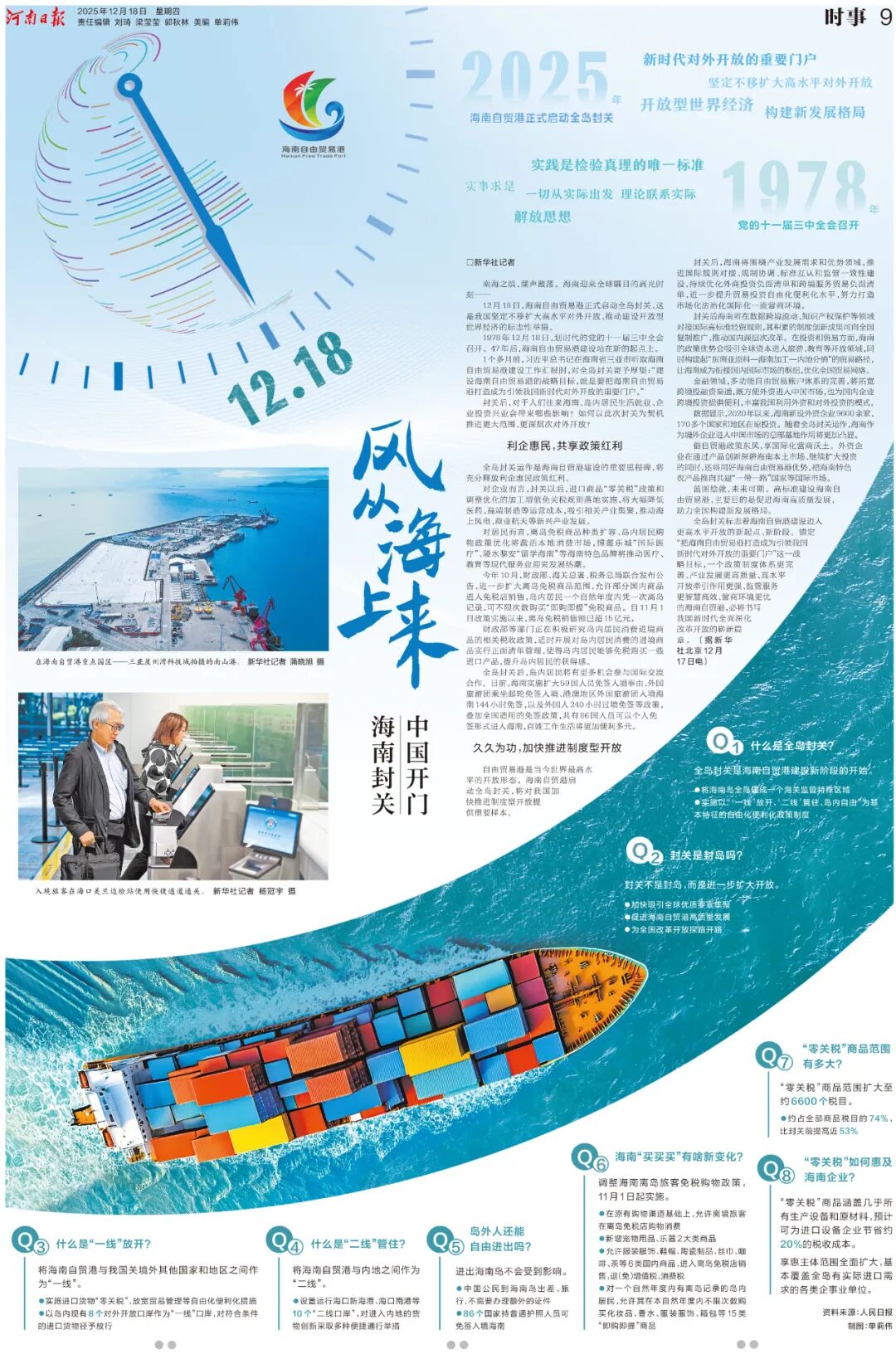 版面|啟航12·18!《海南日報》推出海南自由貿易港正式啟動全島封關百版珍藏特刊