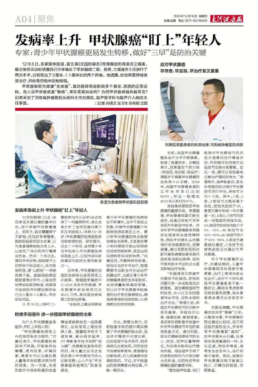 記者采訪了河南省腫瘤醫(yī)院頭頸科主任劉善廷、超聲醫(yī)學(xué)科與超聲介入病區(qū)主任李潛。