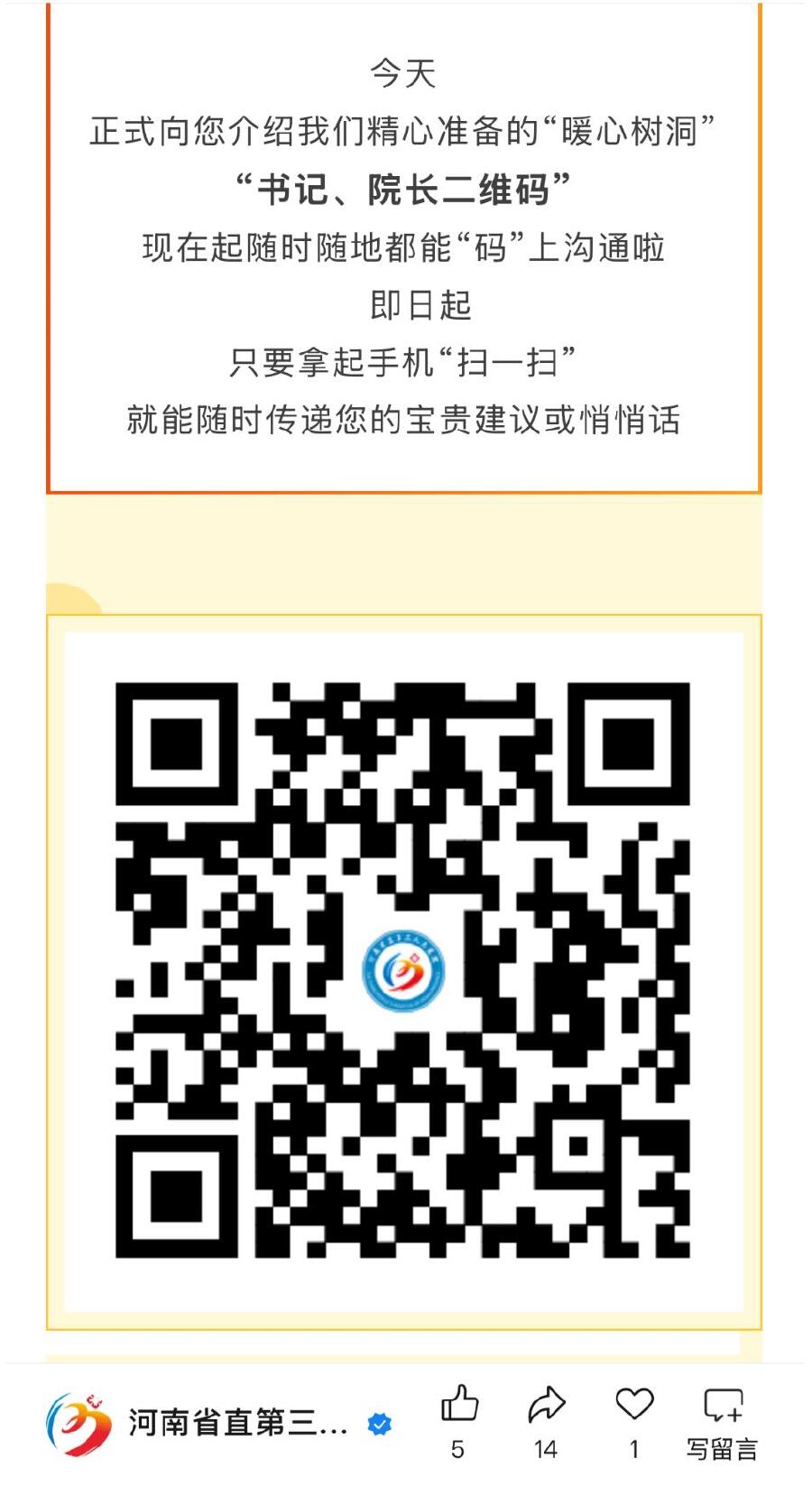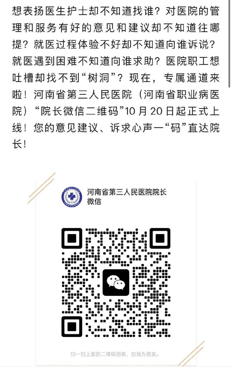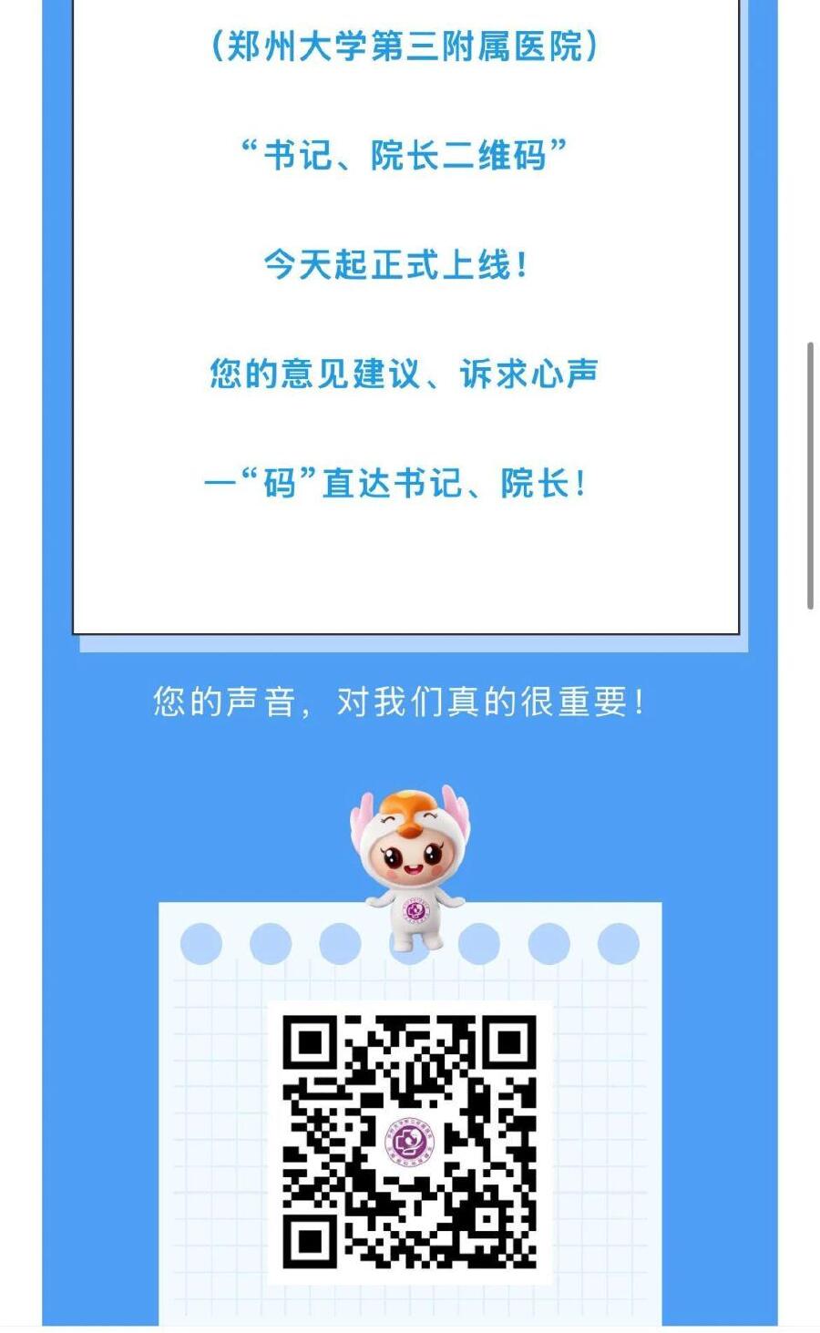 在省級醫院層面,鄭州大學第三附屬醫院于9月15日上線“書記、院長二維碼”通道,成為河南開通省級醫院“管理層直通車”的機構之一。