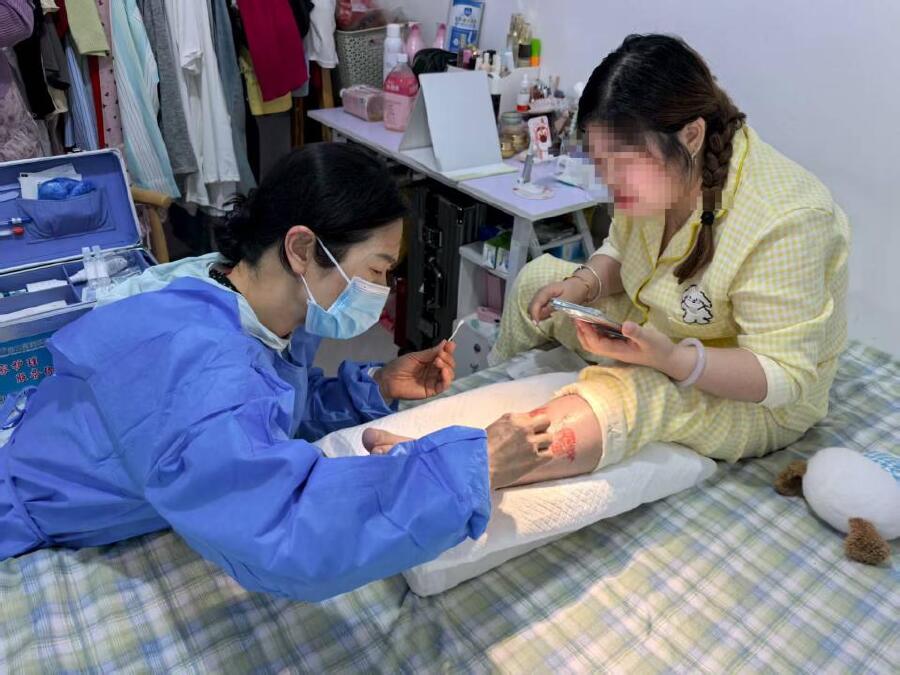 如何讓母親得到更好的照護?張女士一家犯了難。幸運的是,經人介紹,張女士學會了通過“豫健護理到家”小程序預約上門換藥服務。這讓她結識了鄭州大學第五附屬醫院傷口治療師安艷麗。