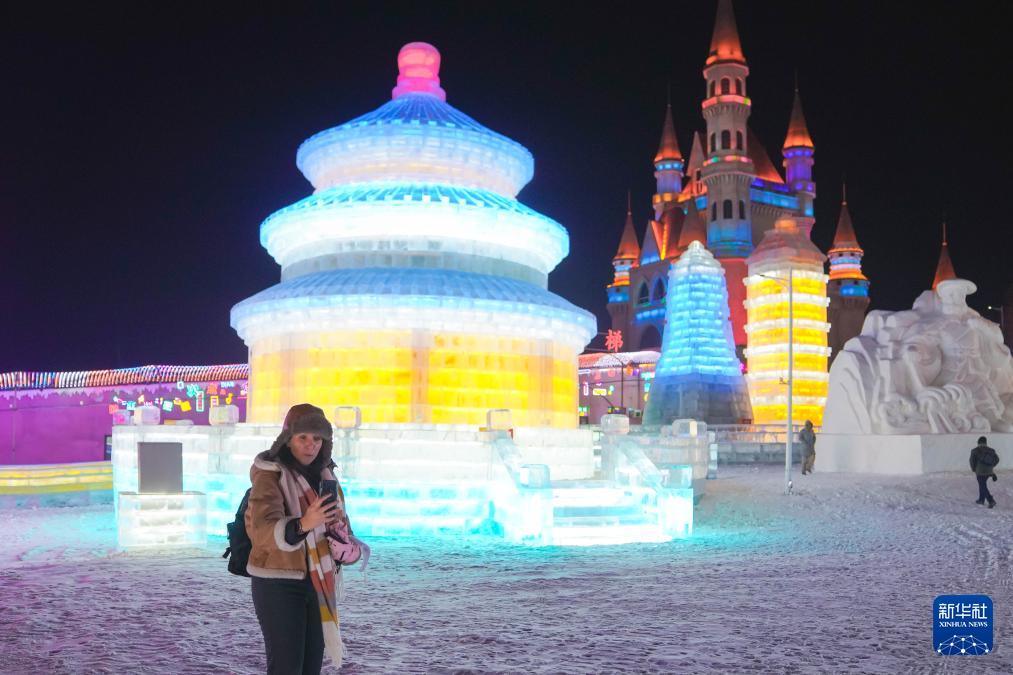12月18日,外國媒體記者在長春市冰雪新天地景區錄制出鏡視頻。