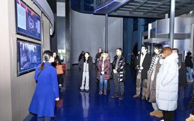 12月17日,外國媒體記者在長春市春京西歷史文化街區參觀傳統手工藝制品。