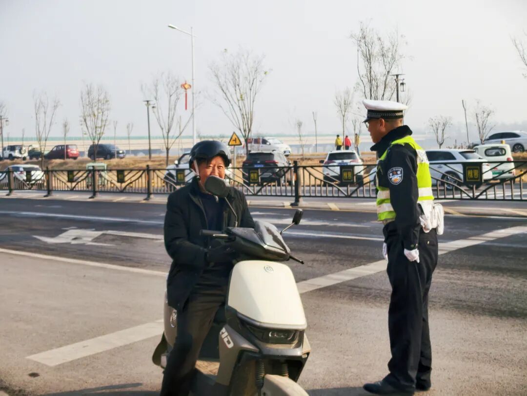 在康莊路與留余街交叉口,交通管理大隊勤務二中隊民、輔警利用路口執勤的時機,對過往電動車騎乘人員進行安全提示與勸導。他們結合常見違法案例,重點講解了非法改裝、不佩戴安全頭盔、闖紅燈等行為的危害,并對不安全行為進行及時糾正。